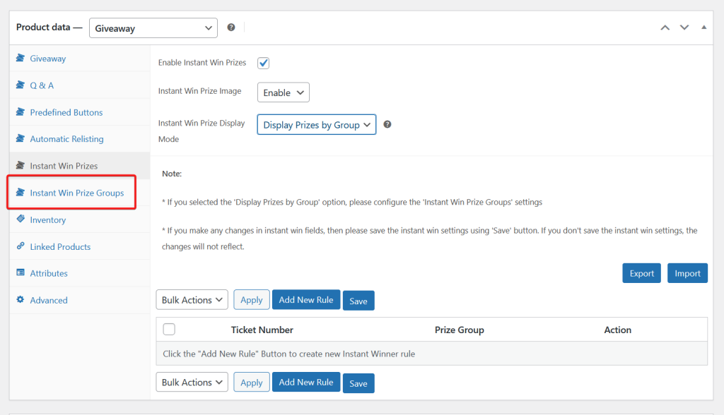 • Go the the Instant Win Prize Groups tab