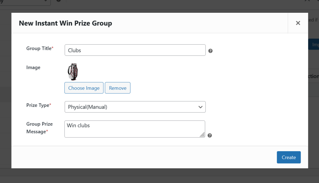 After creating the Instant Win Group, it is now time to create the Instant Win Prizes and assign it to a group.