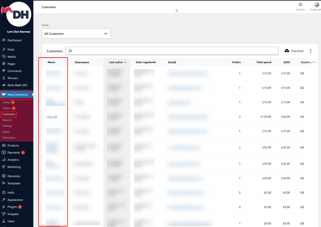 - Scroll to the WooCommerce Customer Data section.